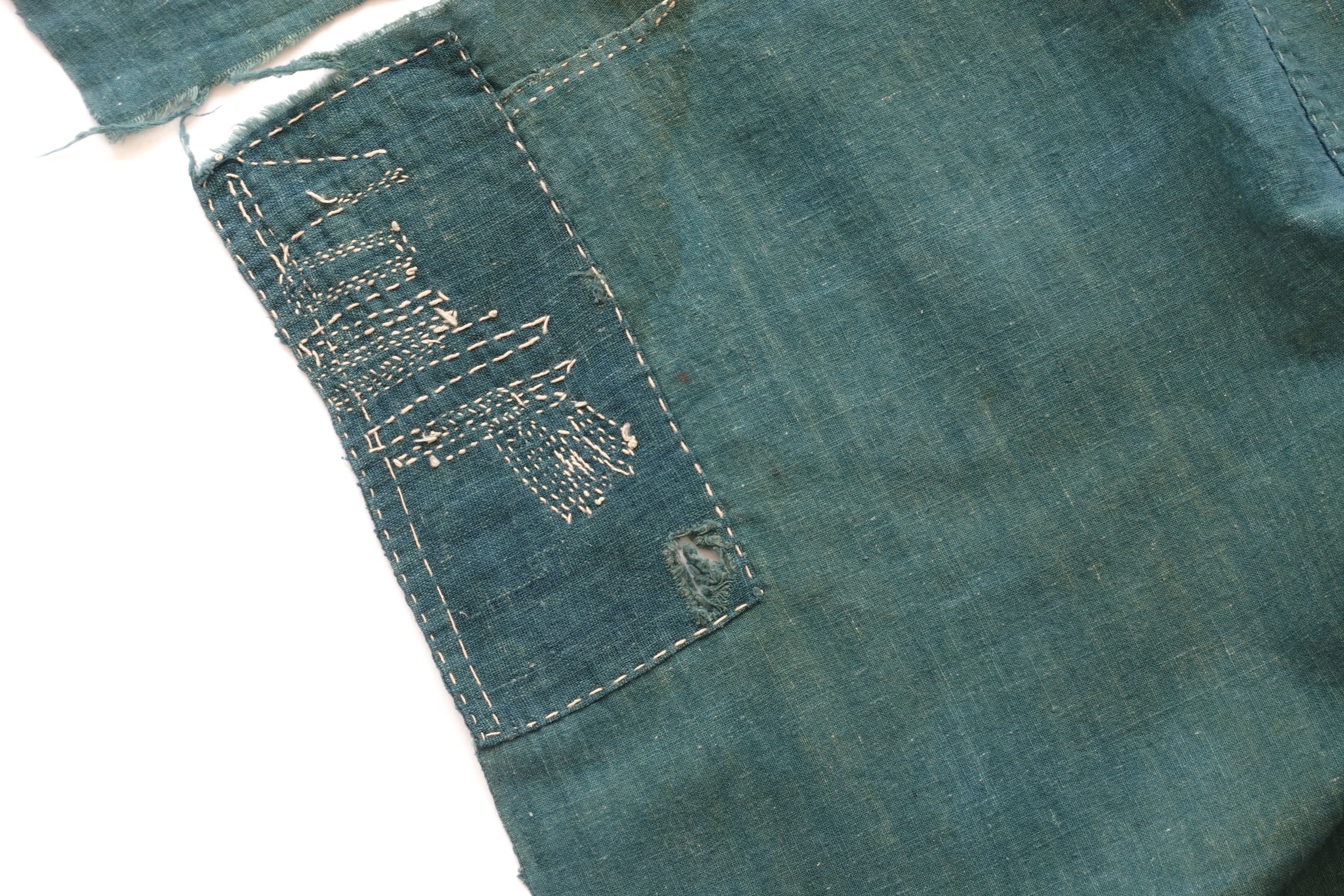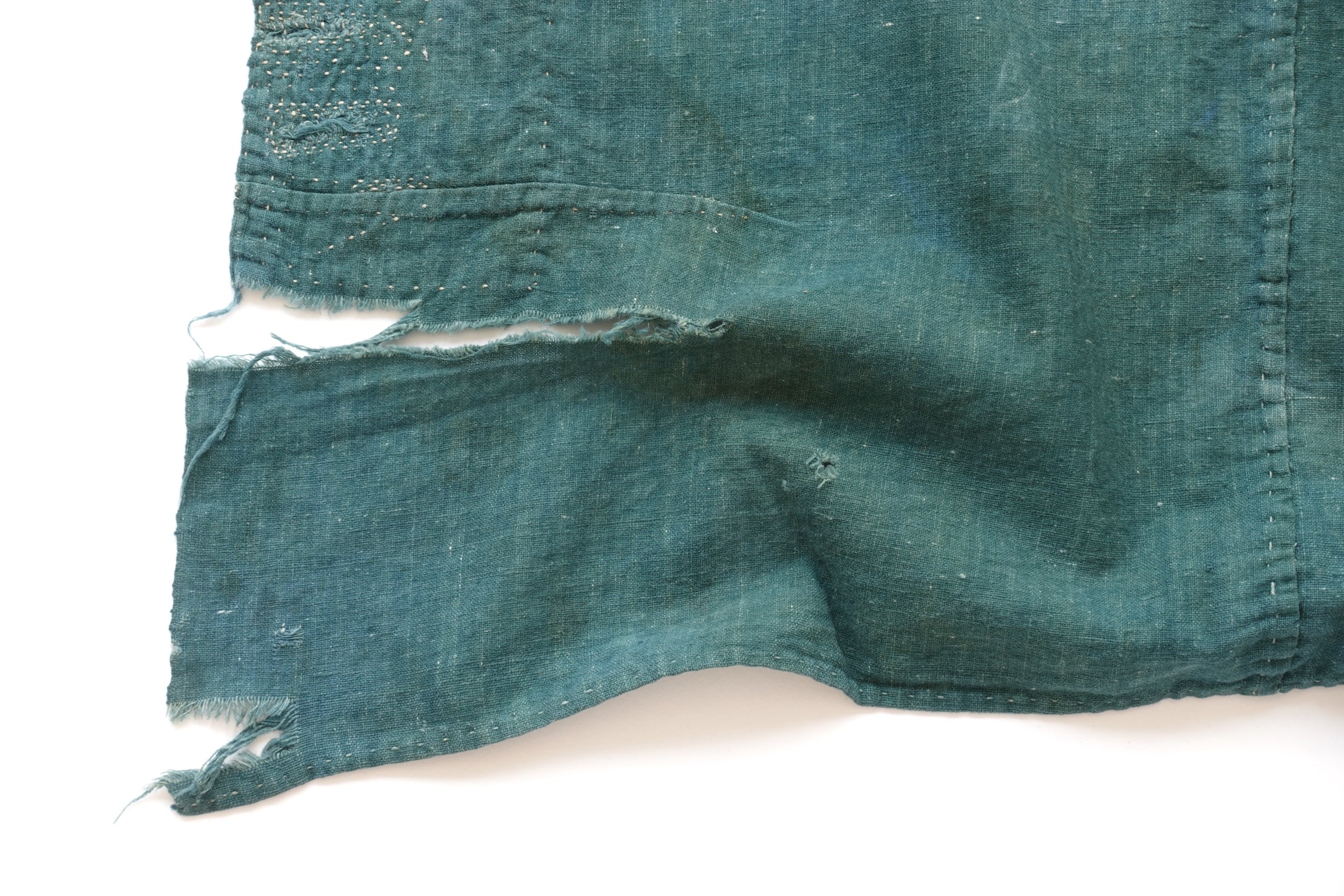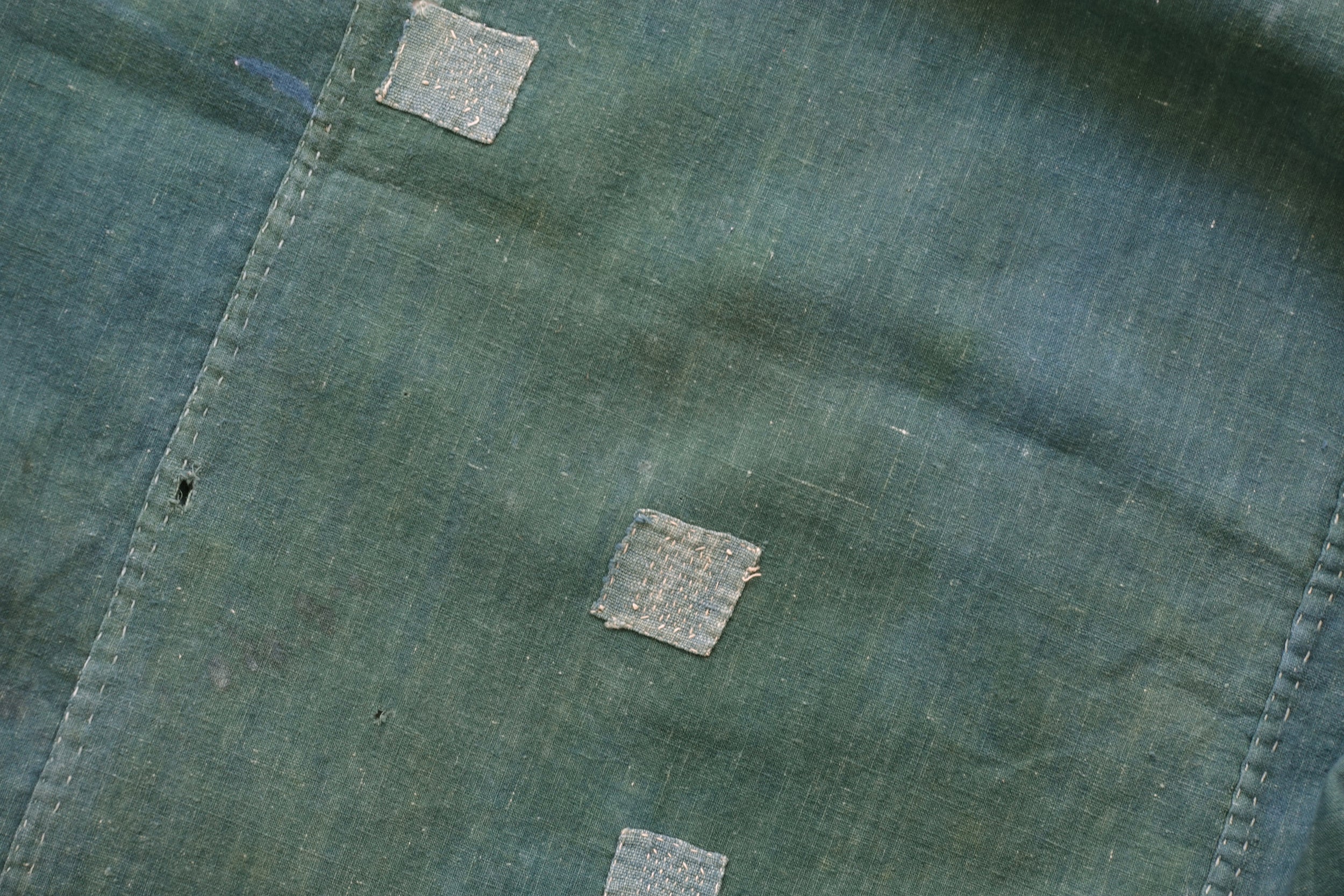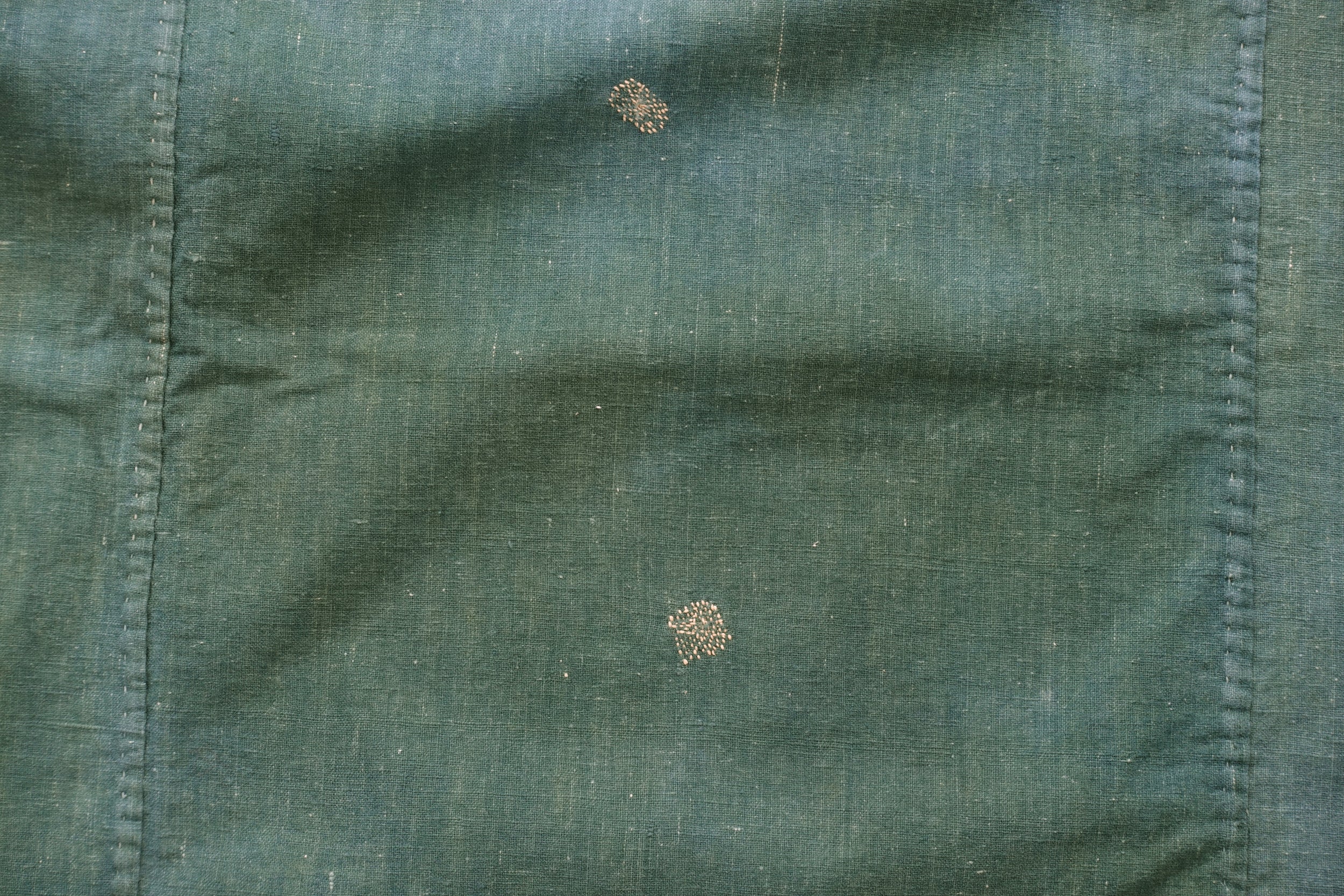 This green Furoshiki features a delicate “Kiri” (Paulownia) flower design printed on one corner, a motif deeply cherished in Japanese culture. Embellished with whimsical “Sashiko” stitches throughout, it exudes a sense of care and history, making it a truly special piece. The subtle tears and signs of wear enhance its charm, telling a story of love, tradition, and years of use. Perfect for adding a touch of timeless elegance to your collection or gifting as a meaningful treasure.