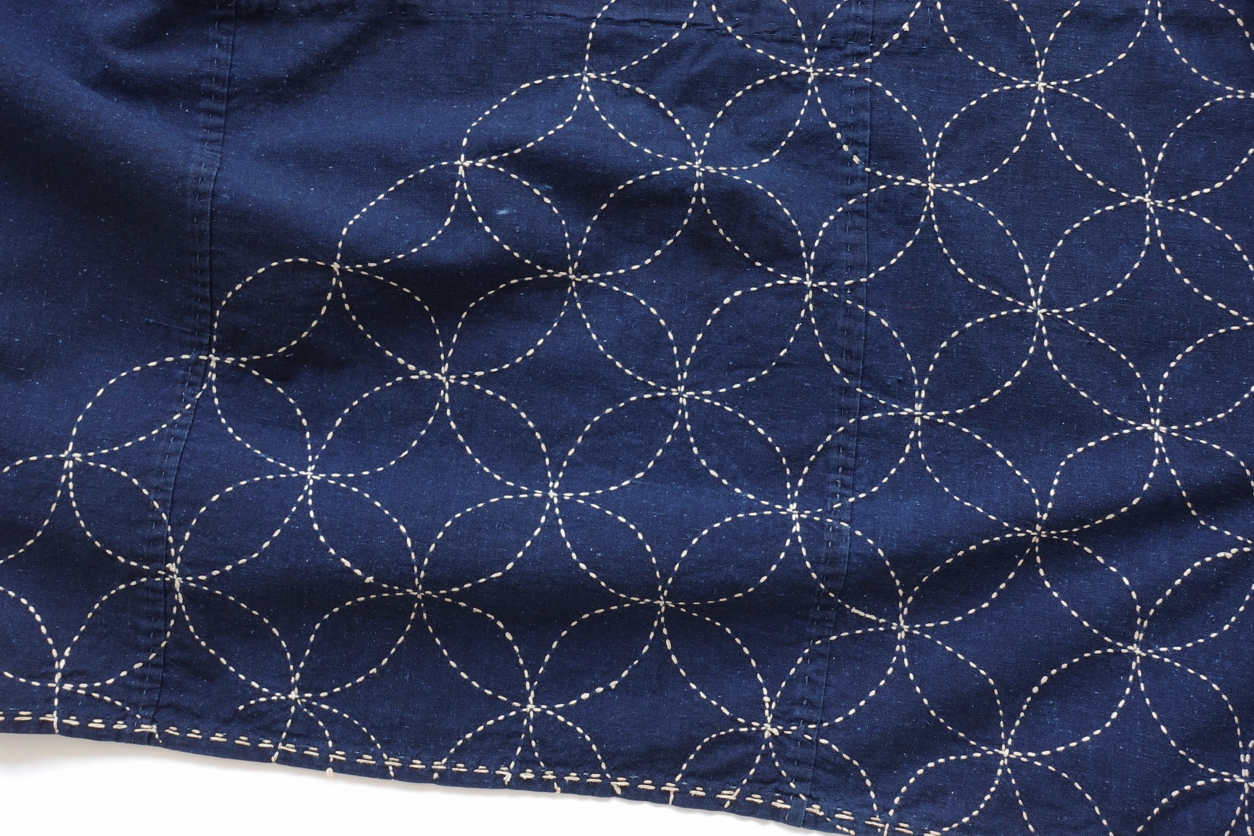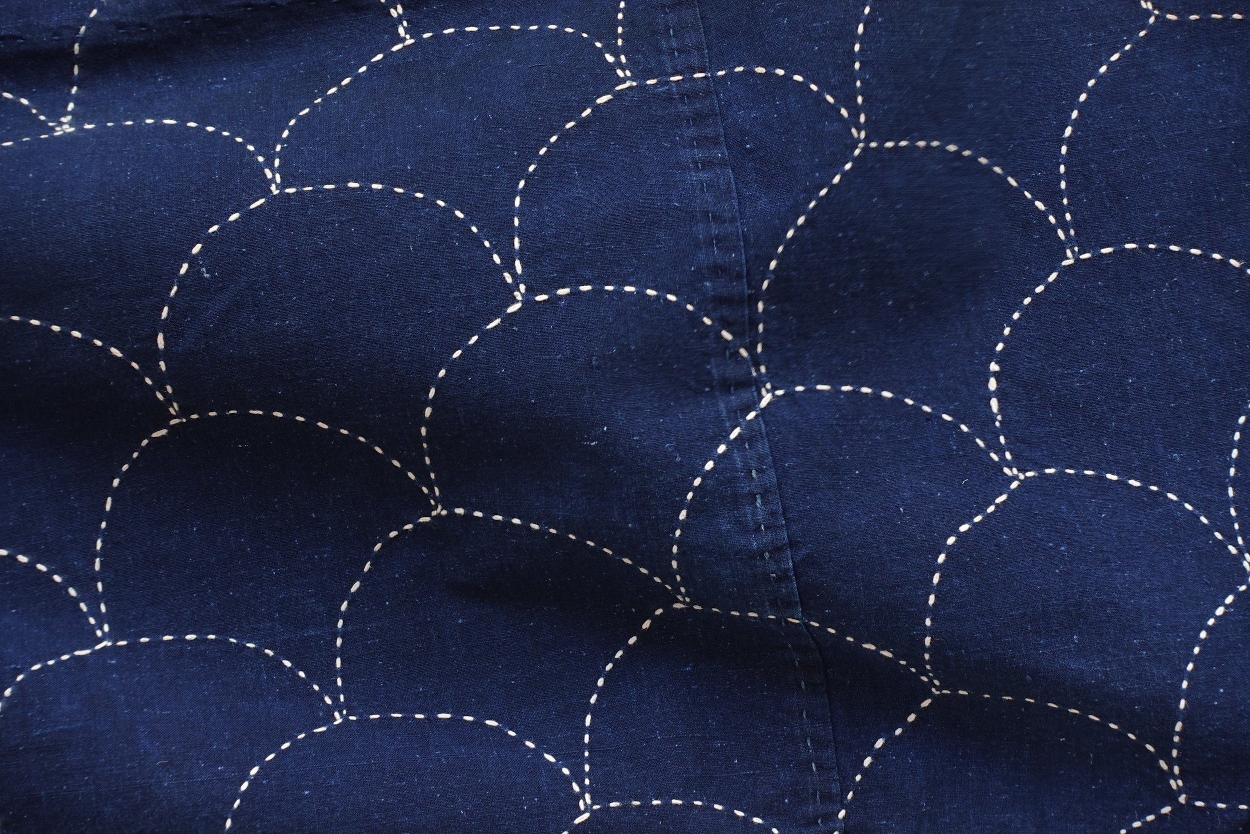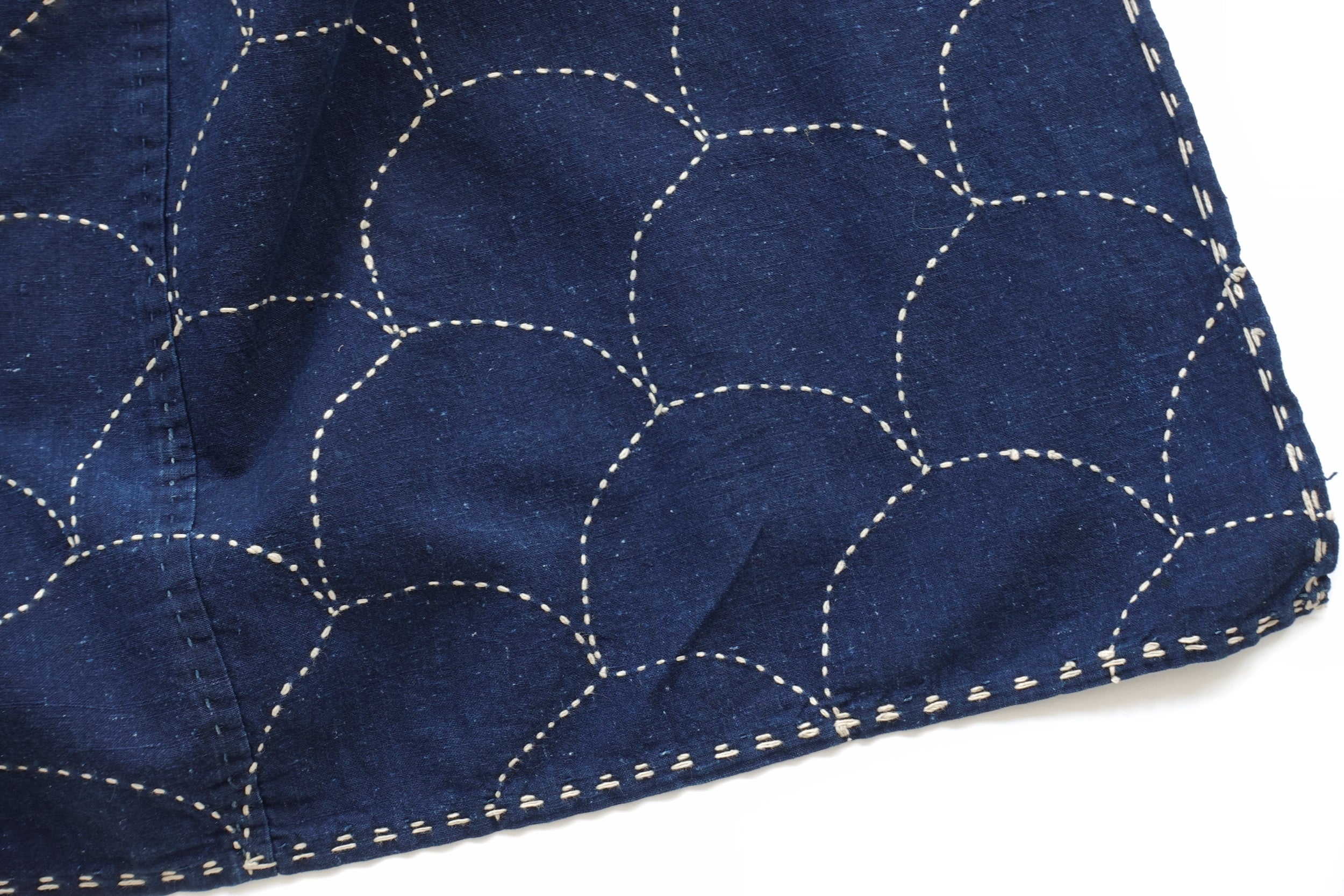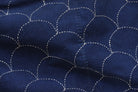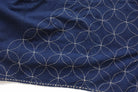 This furoshiki features intricate Sashiko stitching on all four corners, highlighting three traditional patterns: “KIKU” (chrysanthemum petals), “NAMI” (waves), and “Shippo” (gemstone). Rooted in tradition, Sashiko stitching seamlessly blends practicality and beauty, strengthening the fabric while offering decorative elegance.