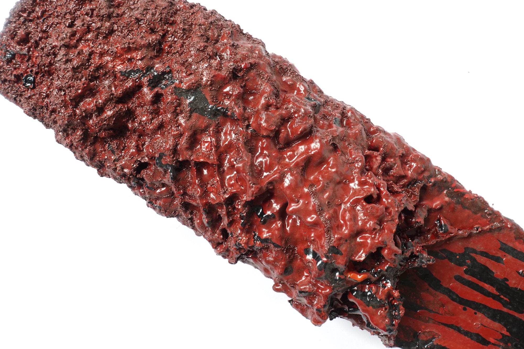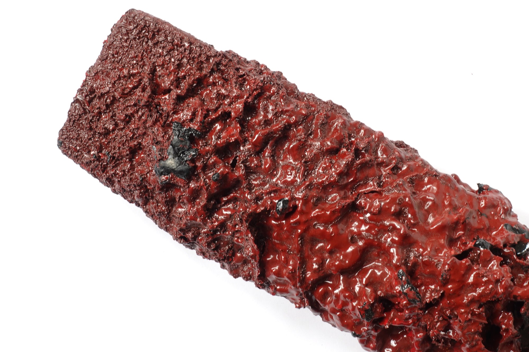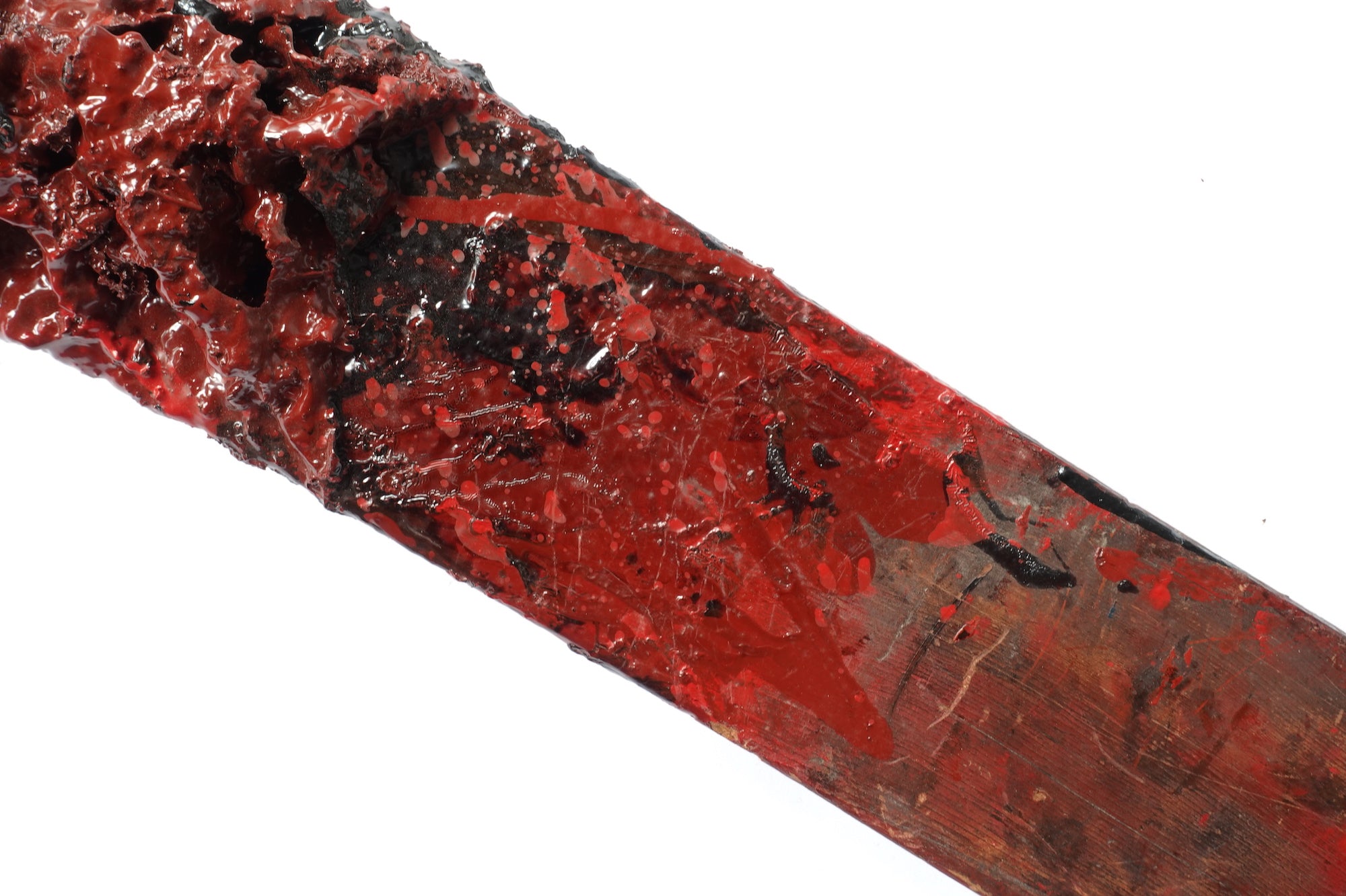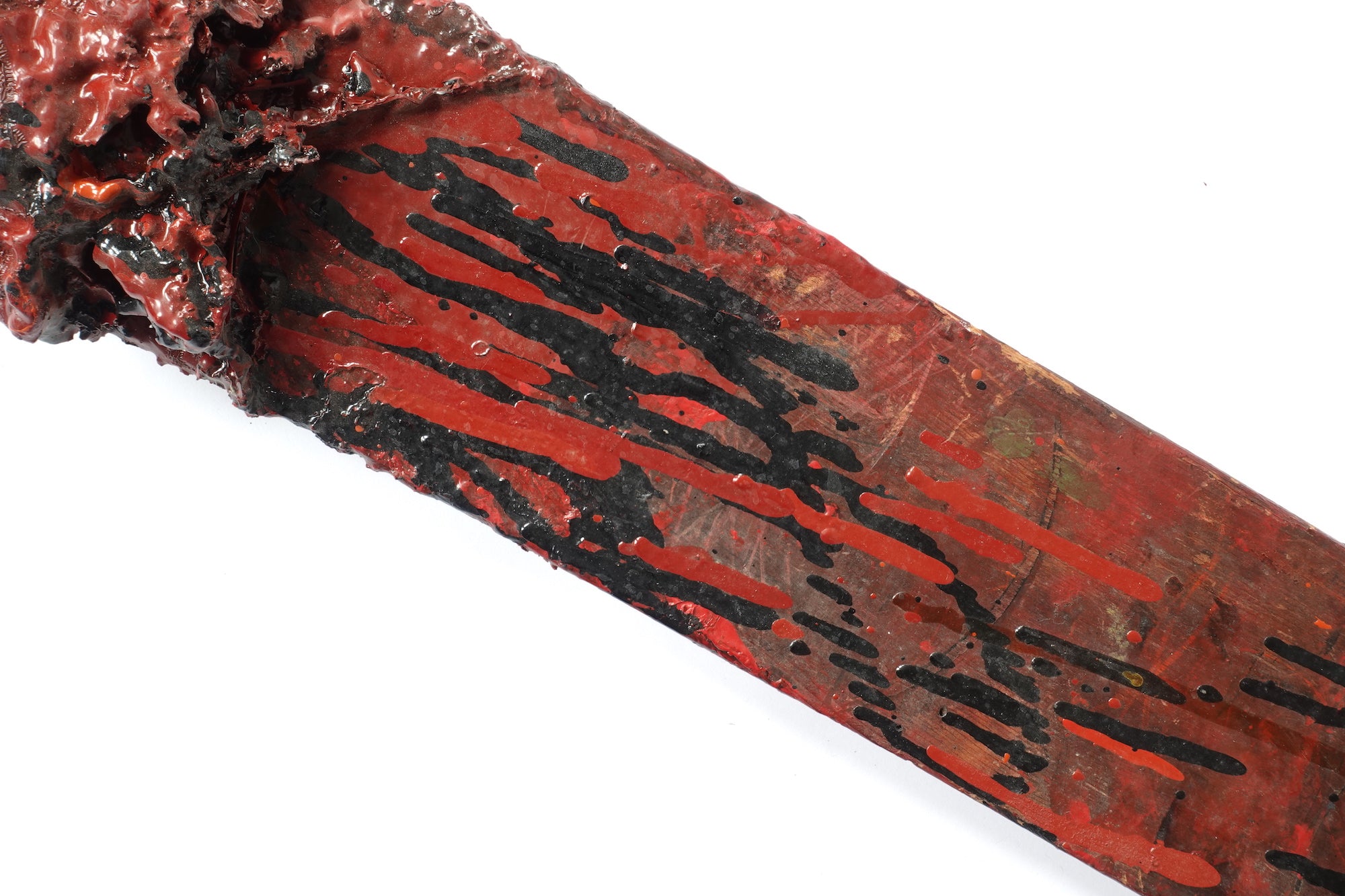 This exceptionally rare vintage wooden stick was used by urushi artisans to mix a bucket of lacquer. Salvaged from the Hokuriku region, one of the major areas in Japan known for centuries of lacquerware production, the stick may be as old as early 20th century and was in use for many decades. It has multiple layers of dried lacquer and patina, with the unique aura and accidental beauty of tactile tools. The mixing stick shares a powerful aesthetic also found in some abstract paintings by artists from post-war Japan.  A great addition for the wall in a modern style interior.